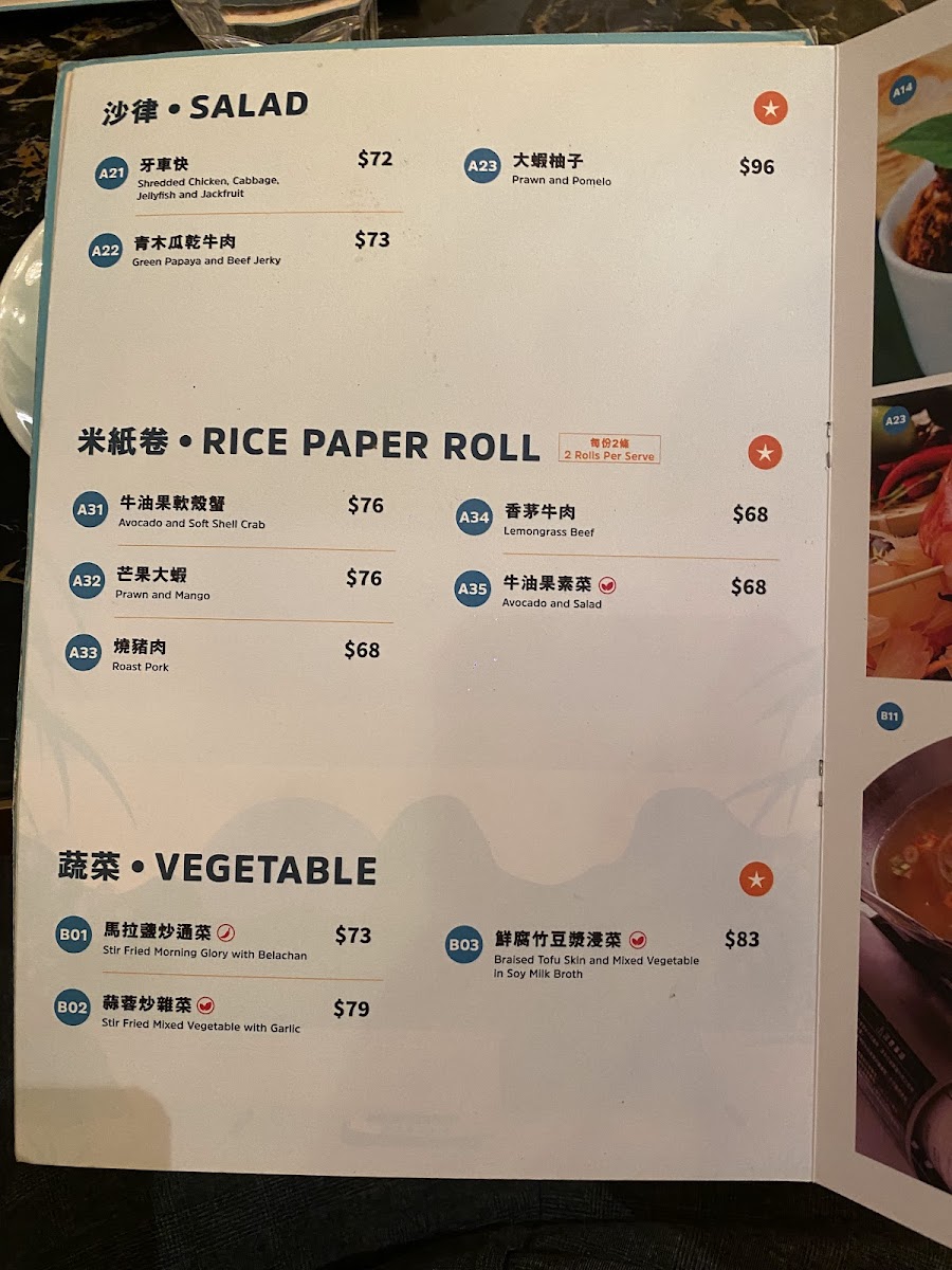 For reference onlyCrispy Spring Roll: Filled with vegetables and proteins, these rolls are deep-fried until golden. Served with dipping sauce, they are a popular appetizer in Vietnamese cuisine. Vietnamese Sausage Rice Vermicelli Salad: This dish features rice vermicelli topped with grilled Vietnamese sausage, fresh herbs, and vegetables. It is typically dressed with a tangy fish sauce, offering a refreshing balance of flavors.